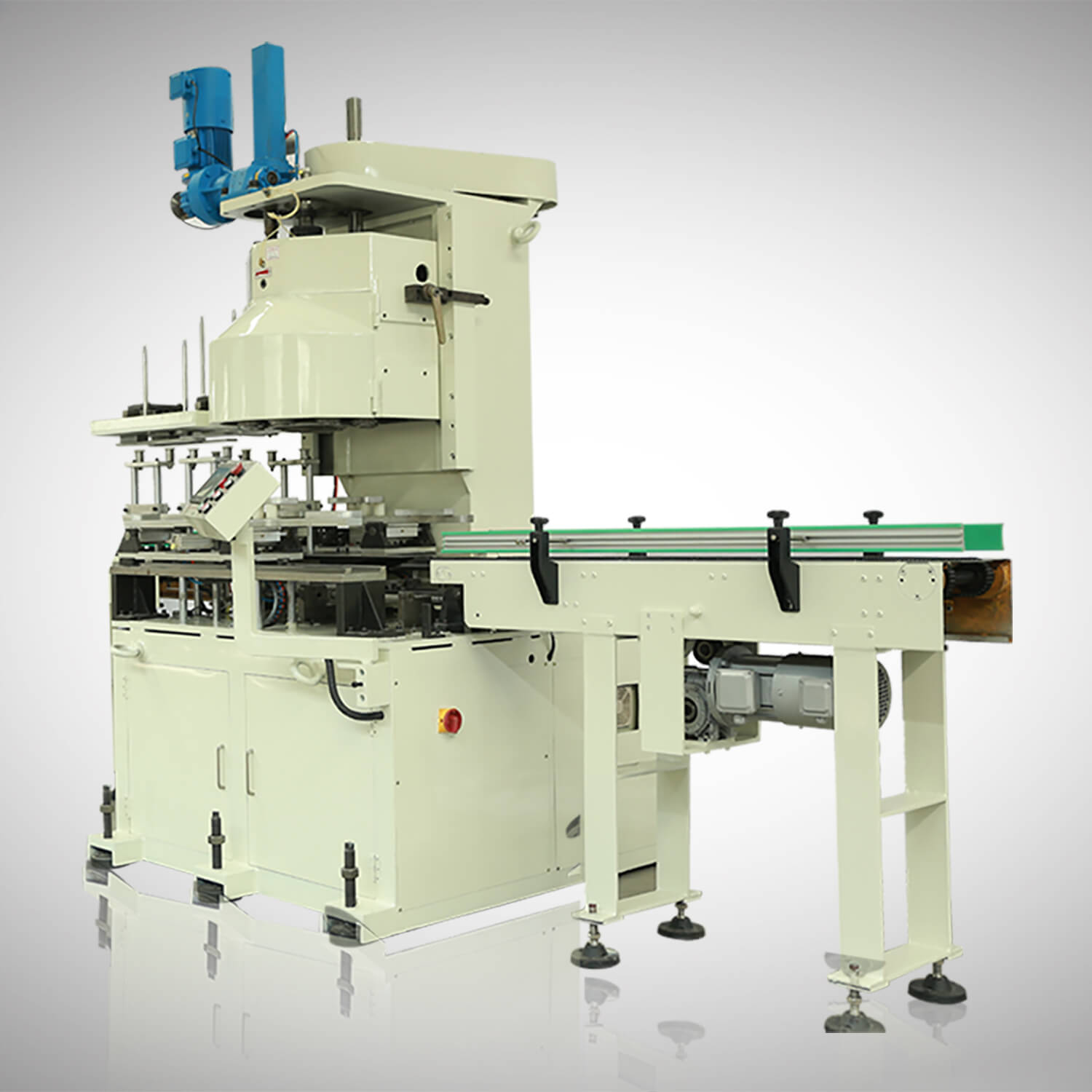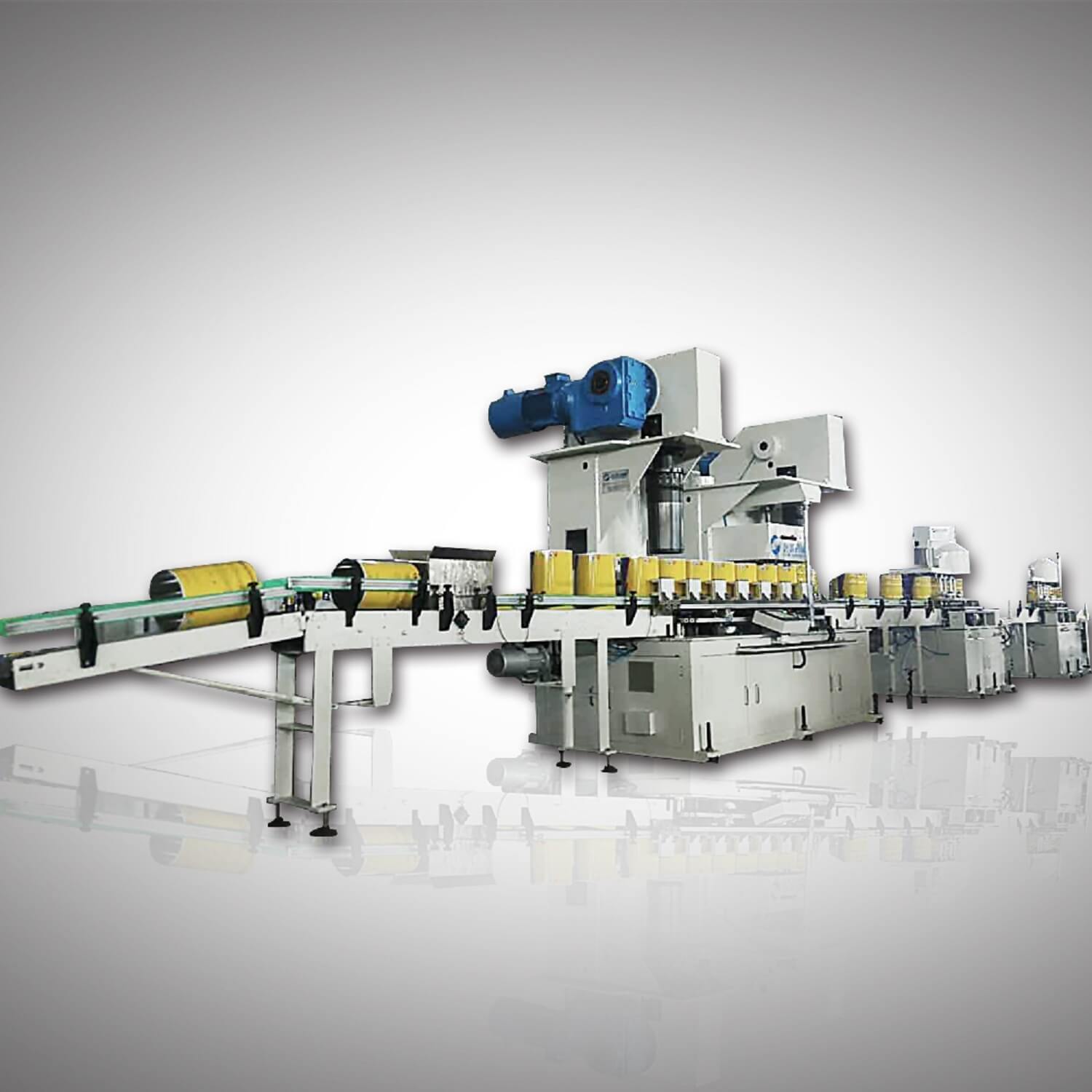 First place the cut can body materials into the automatic resistance welding machine’s feeding table, Suck by the vacuum suckers,send the tin blanks to the feeding roller one by one.through the feeding roller, the single tin blank is fed to the rounding roller to conduct rounding process, then it will be fed to the rounding forming mechanism to make rounding.The body is fed into the resistance welding machine and make welding after the accurate positioning. After welding, the can body is automatically fed into the rotary magnetic conveyor of the coating machine for outer coating, inner coating or inner powder coating, Which depends on customer’s various need.It is mainly used to prevent the side welding seam line from being exposed in air and rusting.The can body should be placed in induction drying oven to dry if it’s inner coating or inner powder coating.Afer drying, It will be fed to cooling device to make natural cooling.The cooled can body is then fed to the conical drum combination machine, and the can body is in an upright state going through the uprighting conveyor.The first operation is the can body conical expansion. When the can body is in position, on the can body lifting tray which is controlled by a servo motor, and the can body is sent by this lifting tray to the conical expanding mold to make conical expanding. Step 2 is upper and lower flanging.The step 3 is carried out if the bottom is required to make triple seaming,making the further more flanging amount of the bottom: The upper mold is fixed on the machine body, and the lower mold, which is mounted on the CAM, completes the upper and lower flanging when the CAM is jacked up. The step 4 is beading. After completing the above four steps, the conveyor belt will send the can body to the sealing machine. When the bottom lid auto feeder detects the can body coming, It will automatically feed one bottom lid to the top of the can body,and then both the can body and the bottom lid will be clamped to seaming machine head to make auto seaming.After bottom seaming, the can will be reversed up and down by reversing device,and then make top seaming,this process is the same as the bottom seaming process.Lastly,the finished can is fed by conveyor to automatic leak tester station.After accurate air source inspection, unqualified products are detected and pushed to a fixed area, and qualified products will come to the packaging workbench for the final packaging process.